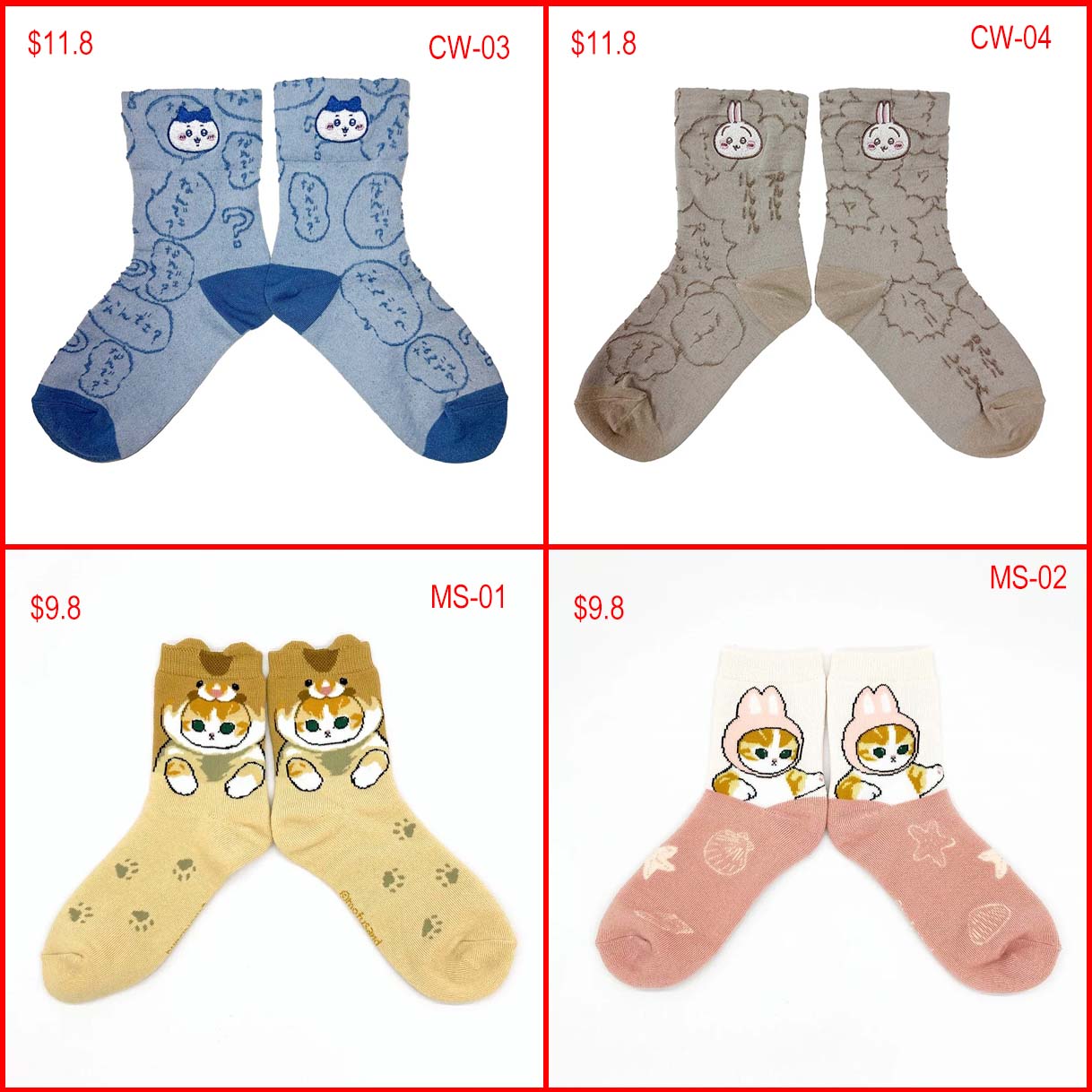 Mofusand and Chiikawa socks,