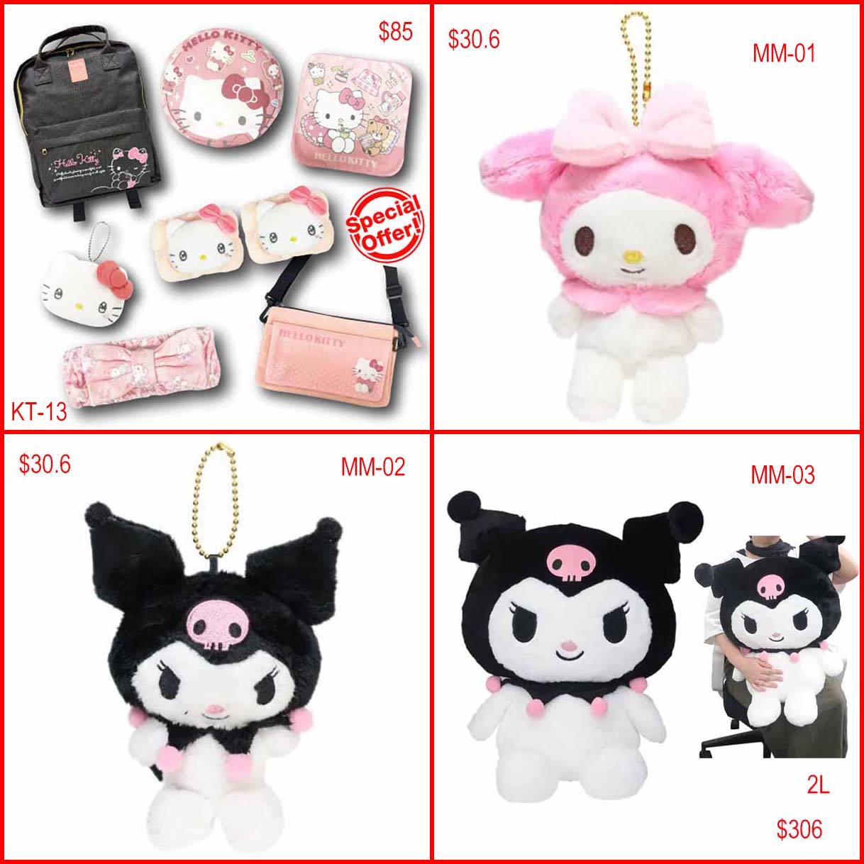 2L Kuromi and Cinnamonroll plush (perfect gift!),
