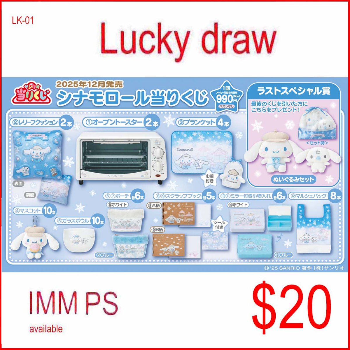 Cinnamoroll Winter December 2025 Premium Kuji Lucky Draw from Japan!