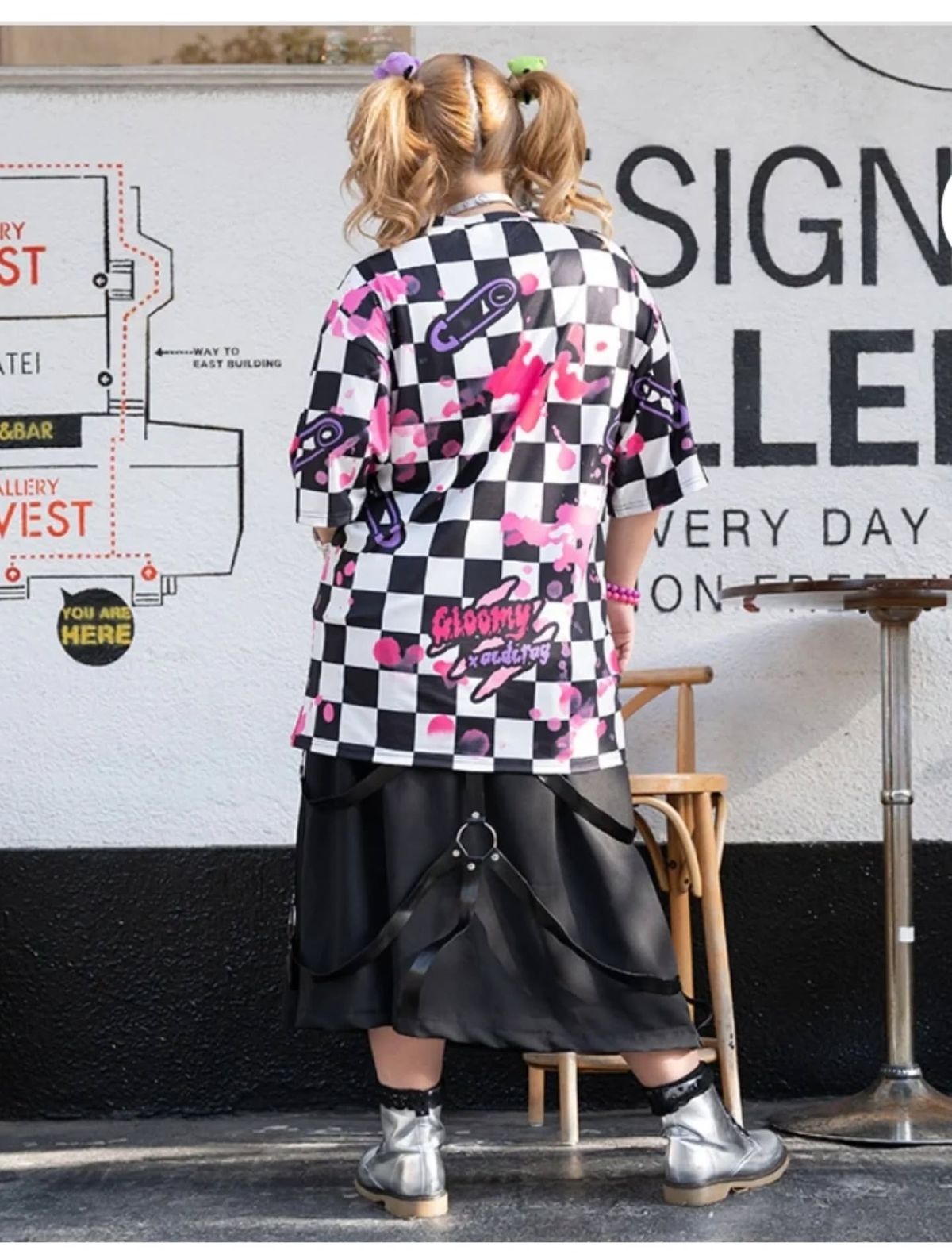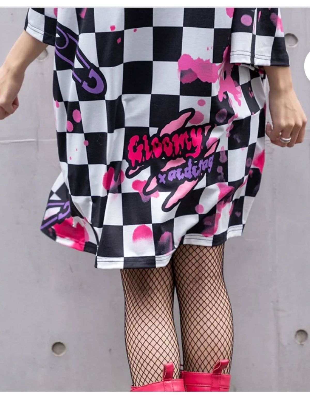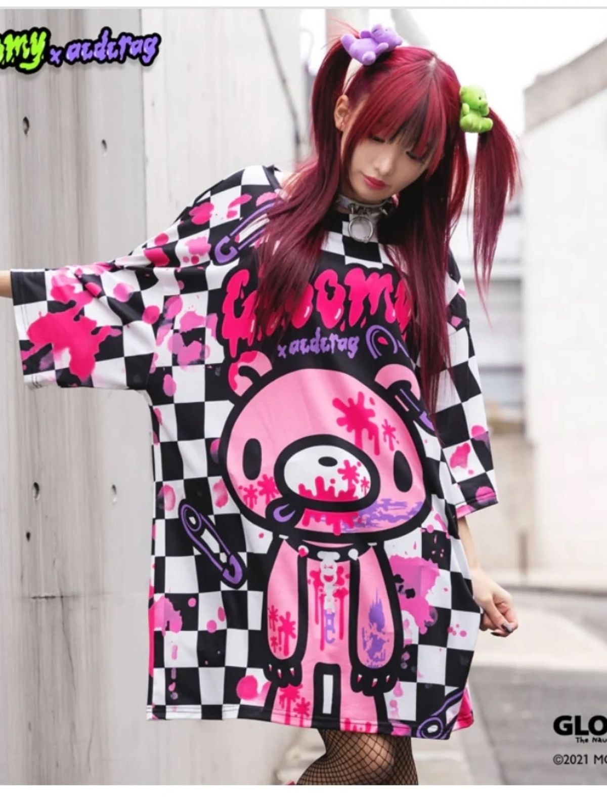 Gloomy Bear x ACDC RAG Checkered Oversize Tee Harajuku style from Japan
