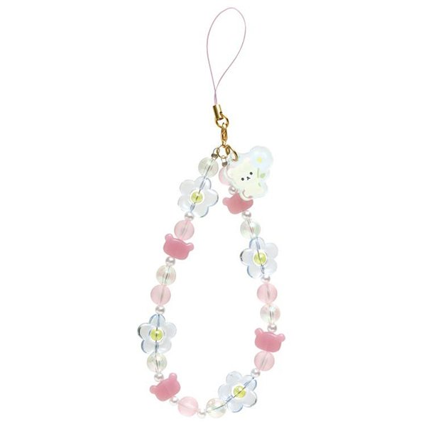 Rilakkuma : Basic Rilakkuma Flower Sparkling Bead Hand Strap (Rilakkuma/Korilakkuma) from San-x Japan