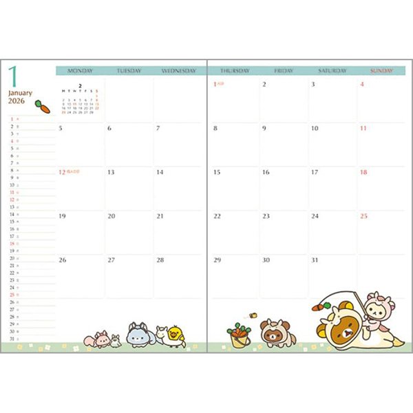 San-X B6 Weekly Schedule Book - Rilakkuma Rocking Horse Purple 2026 from San-x Japan