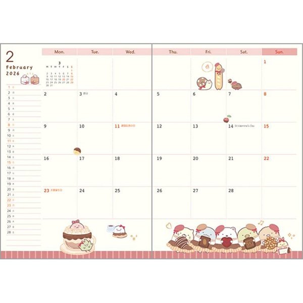 San-X B6 Weekly Schedule Book - Sumikko Gurashi : Year Of Horse 2026