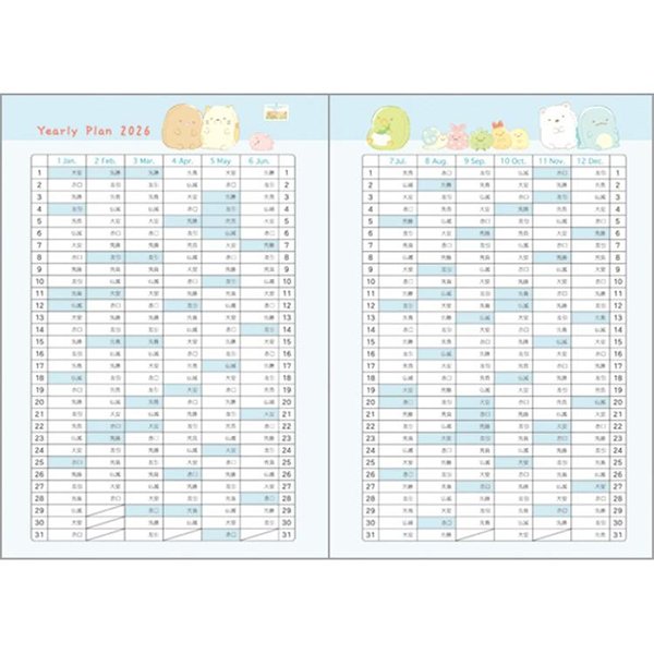San-X B6 Weekly Schedule Book - Sumikko Gurashi : Year Of Horse 2026 from San-x Japan
